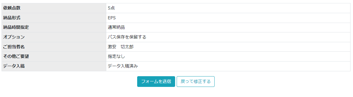 画像データをアップロードしたら、確認ページへ進み、発注フォームを送信してください。